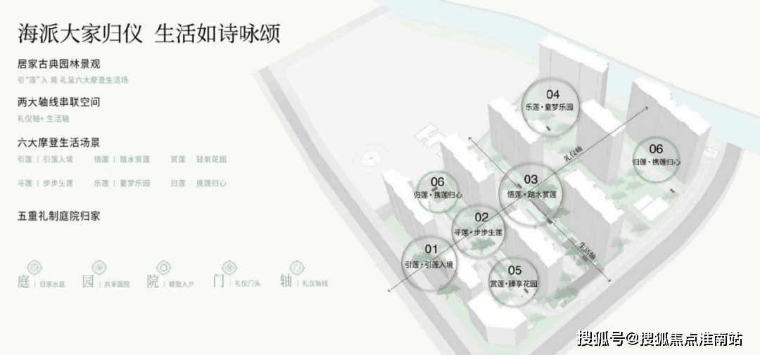 景观轴线归家仪式和园林景观。社区园林上定制了两大轴线、五重礼制归家、六大摩登生活场景等。泛会所客厅,可林下赏莲会友。