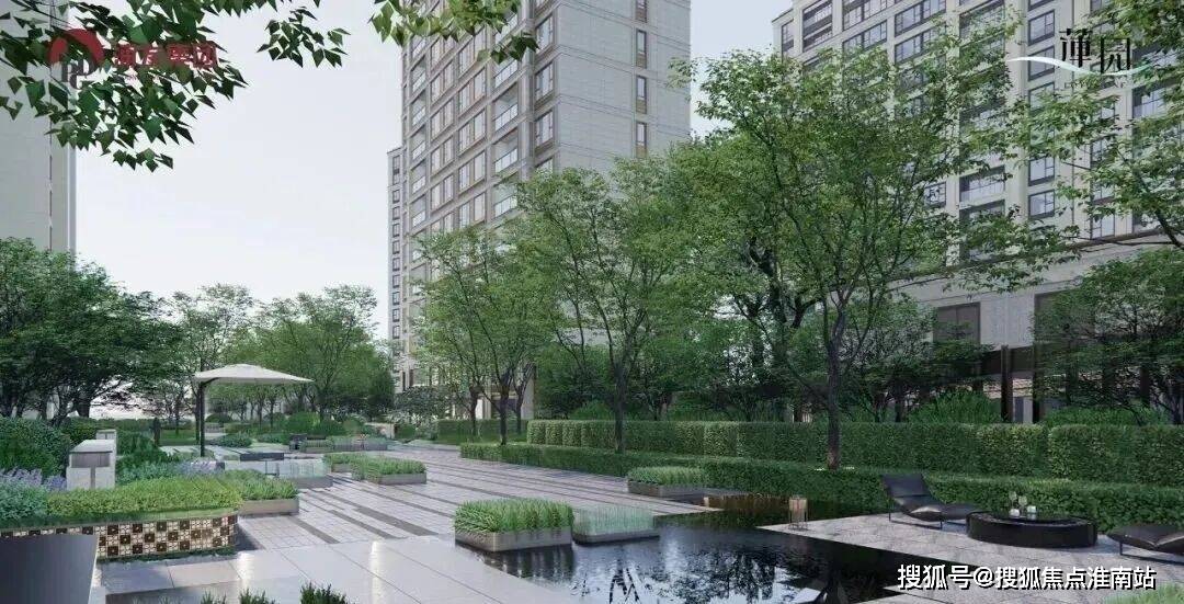 中央水韵庭院以「叠水莲池」为理念打造多层次的水景体系,叠水瀑布形成动态的水流韵律,池畔大理石打造的休憩长桌,成为被绿意环抱的林下空间,氛围相当惬意~