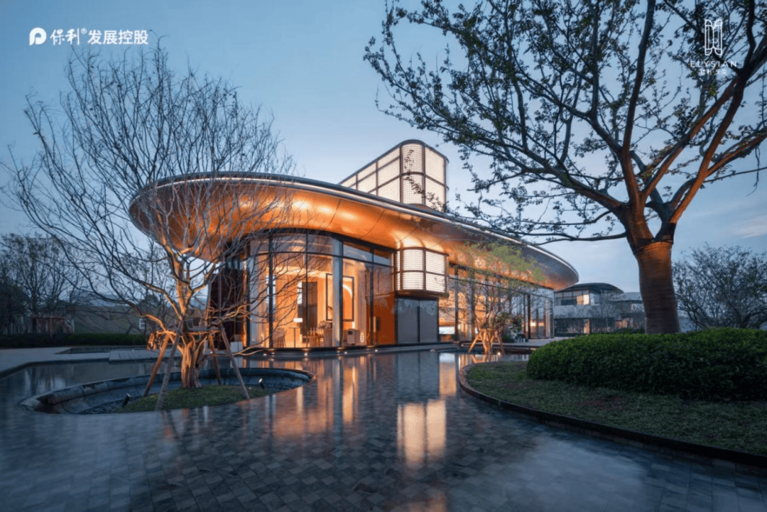 唯逸度假村的酒店式高奢门头、豪宅专属定制的符号设计以及度假酒店式夜视灯光等等保利天奕独享设计美学,