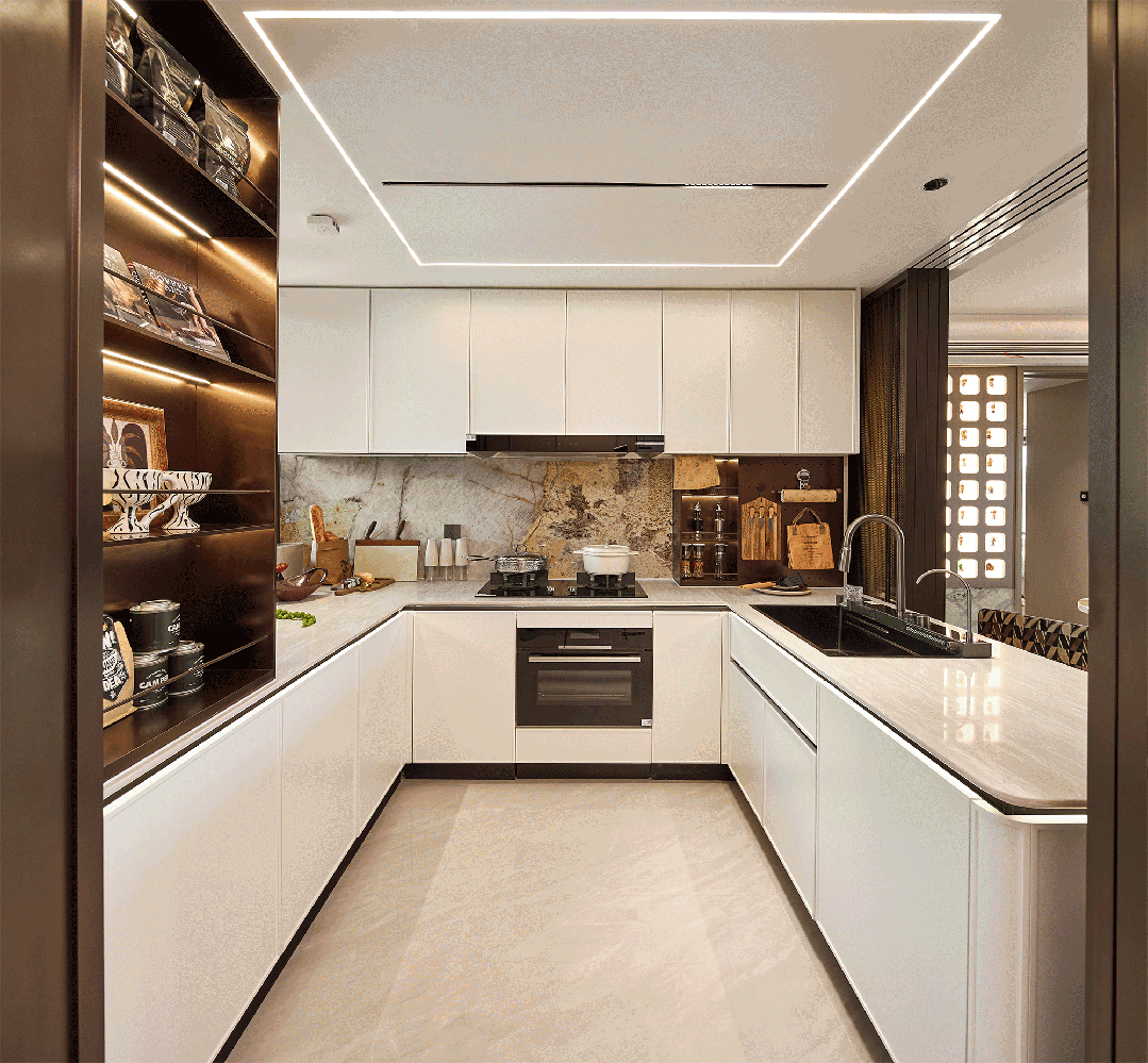 除此之外,保利天奕还引入全屋智能系统,无论是通过手机APP远程调节灯光色温、开关电器设备,还是以语音指令唤醒灯光、开合电动窗帘,或预设归家、离家等智能场景模式,都非常方便,将科技与生活无缝融合