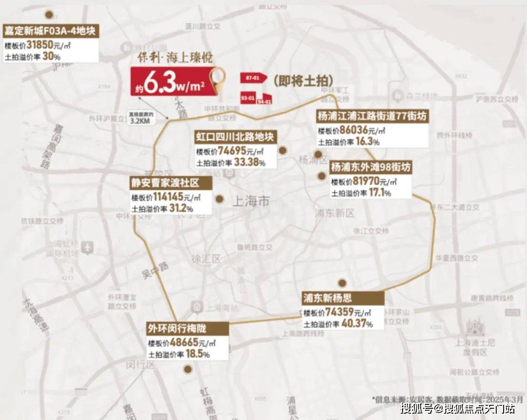 5月14日上海市土地交易市场发布宝山区W12-1301单元90-01、91-01、92-01、93-01、94-01、87-01地块挂牌,地块起拍价81亿,起拍价对应的可售商品住宅整盘微利售价6.3万/㎡,若以当前市场30%溢价率来算,对应的可售商品住宅整盘微利售价将直冲7.9万以上/㎡,中环旁大四房总价更是轻松破千万!