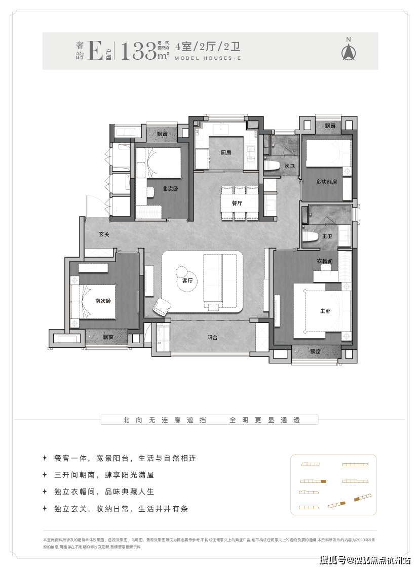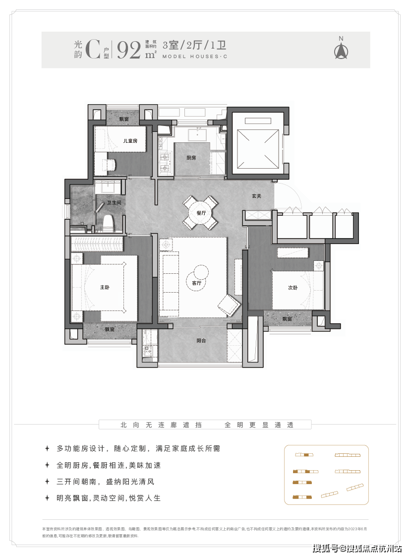 ,你买的每一平米都有很高的实用度。另外这个户型能更好实现南北通透,客厅-餐厅-阳台-厨房一线连通