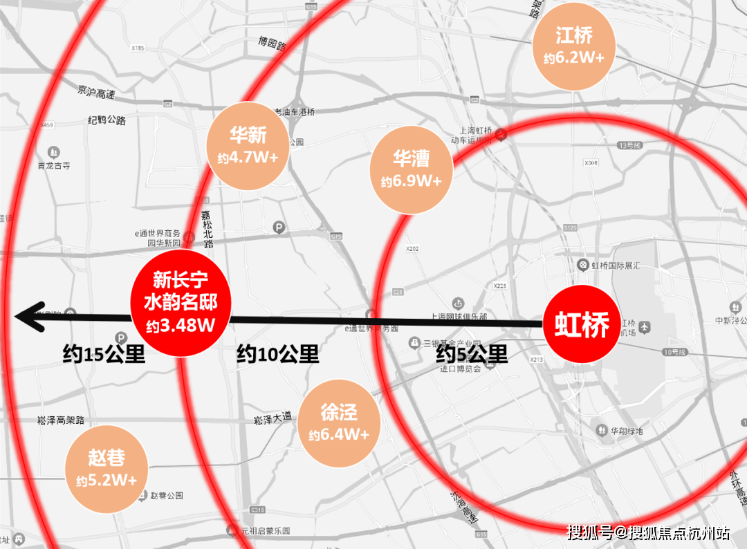 从新长宁·水韵名邸行驶到崧泽高架入口仅约1.5公里,可以直达虹桥商务区。